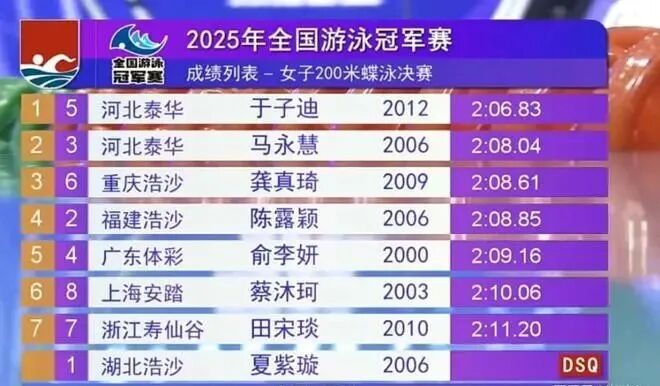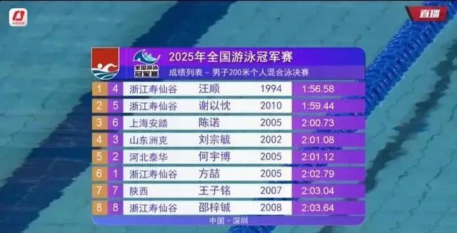 Day 5 of the 2025 National Swimming Championships: 12-year-old Yu Zidi wins the 200m butterfly, capturing global attention in the swimming world; meanwhile, 31-year-old Wang Shun claims the 200m individual medley title, clocking the fifth-fastest time ever recorded.
