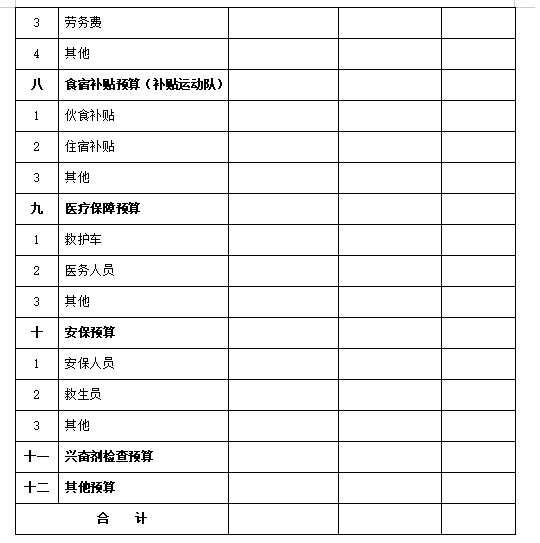 Funds for the event must be raised independently and should cover, but are not limited to, event operational costs, referee fees, promotional expenses, broadcasting costs, procurement or rental fees for competition equipment, sports presentation expenses, and other essential event-related expenditures. Detailed explanations of the funding amounts and methods for securing these resources are required.