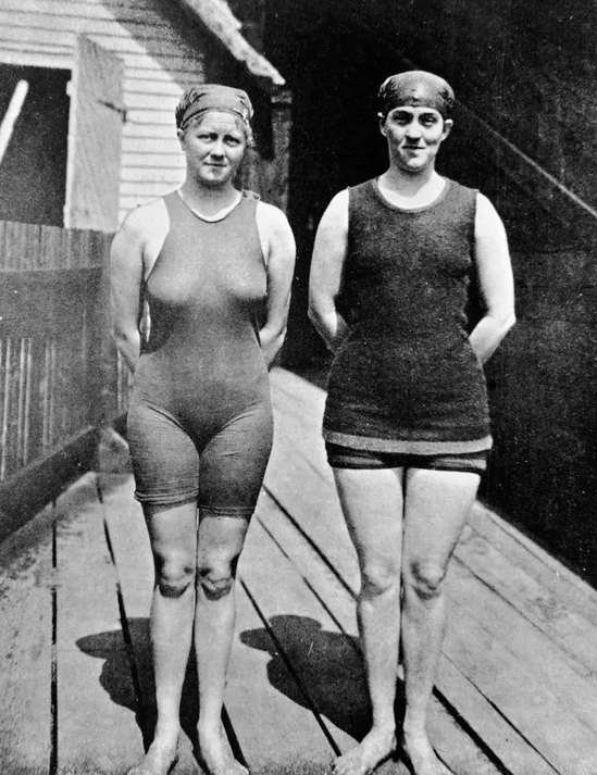 Australia’s two female swimmers who made their Olympic debut—Mina Wylie (left) and Fanny Durack—pose by the pool at the 1912 Stockholm Olympics. They competed in the 100-meter freestyle, a historic event that marked the first time women were allowed to participate in swimming at the Games. Durack went on to win the gold medal, while Wylie claimed the silver.