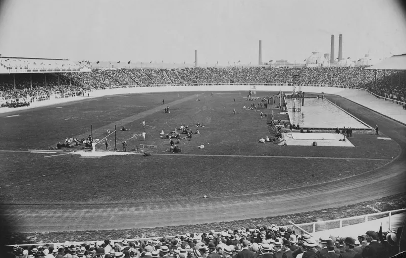 A panoramic view of the White City Stadium, the swimming and diving venue for the 1908 London Olympics.