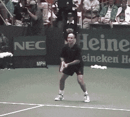 (Translator's note: In the final sentence of this paragraph, the author actually used a question mark (!?) at the end in the original text.)Translator's note on wrist lockingFor now, let's remain skeptical.This type of return practice isn’t easy for beginners—body-stretching returns are only used under extreme conditions.Under the condition of fully extending their bodies, players rely very little on the power generated by shifting their center of gravity.If the arm is fully extended and you grip the racket firmly using just the bottom three fingers, this technique generates wrist torque that propels the racket head forward, resulting in a shot speed equal to the sum of the ball’s velocity and the racket head’s speed. However, if you extend your arm and grip the racket with your entire palm instead, you’ll lose that wrist torque entirely—the racket head will move purely linearly forward, causing the ball to rebound more passively rather than being actively driven. In this case, the shot speed will depend primarily on the ball’s velocity.