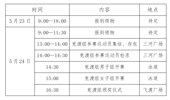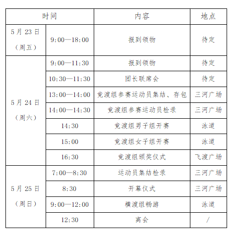 (II) The crossing event this timeThis event is limited to 5,000 participants for the Open Water category and 2,000 for the Competitive Race category. There’s no limit on the number of entries per organization, and participants can register for both the Open Water and Competitive Race categories if they choose.(III) Participants must submit a "Voluntary Participation Health and Safety Responsibility Commitment Letter" signed by themselves and pay the registration fee to complete the registration process.(IV) Health Requirements for Participants1. Swimming competitions are a physically demanding sport that place high demands on participants' physical condition. Participants should be in good health and have a solid foundation of regular swimming practice or training. Individuals may register based on their own fitness level and personal capabilities. The organizing committee requires all competitors to undergo a pre-event health check-up at a qualified medical facility (at district or county level and above) prior to the competition.The following individuals should not participate in the competition:① Patients with congenital heart disease and rheumatic heart disease;② Patients with hypertension and cerebrovascular diseases;③ Patients with myocarditis and other heart conditions;④ Patients with coronary artery disease and severe arrhythmias;⑤ Diabetic patients with blood sugar levels that are too high or too low;⑥ Individuals who have experienced fever or high fever within the 30 days prior to the competition;⑧ Others who are not suitable for this sport.If participants violate the rules without authorization, they shall be solely responsible for all resulting consequences.2. After the participating athletes complete check-in and verification, they should perform warm-up exercises at the starting point. Athletes who fail to attend the second check-in will be considered to have forfeited their participation.3. Alcohol testing will be conducted during this competition. All participants will undergo an alcohol test before the race, and those who fail the test will not be allowed to compete.4. Participants must meet the age requirements outlined in the competition rules and demonstrate the ability to swim 1,500 meters or more in open water, or have prior experience successfully crossing large rivers, lakes, or other expansive bodies of water.5. In the event of personal injury or property damage caused by individual health conditions or other personal reasons during the competition, the participant shall bear full responsibility.(5) Currently active, registered professional swimmers are not permitted to compete in the racing category. Any athlete found in violation will have their eligibility and race results immediately disqualified.All participants (Crossing Group and Racing Group) must register via an online platform. The Crossing Group accepts only team registrations, while the Racing Group is open exclusively to individual entries. To sign up, search for the official registration mini-program corresponding to your group on WeChat, enter the event registration system, and complete the registration by providing your personal information as requested. For the Racing Group, successful registration will be confirmed once the online payment is made. Payment details for the Crossing Group will be announced separately.1. The crossing group is open to participants aged 18 to 65 (born between May 25, 1960, and May 25, 2007, based on ID card age).2. The racing group is open to participants aged 18 to 45 (born between May 24, 1980, and May 24, 2007, based on ID card age).1. River Crossing Group: 150 RMB per personThe fee includes: the participant pack, commemorative medal, event-specific swimwear, swim cap, goggles, safety buoy, and other related event materials.2. Racing Team: 200 yuan per personThe fee includes: event supplies (such as the race pack, race apparel, swim cap, goggles, safety buoy, and disposable ID wristbands), as well as finisher items (including the finisher medal, finisher towel, post-race refreshments, and slippers).Registration period: Early March to early April 2025Payment methods: For the Race Group, online payment is required (registration is confirmed upon successful payment). Payment details for the Crossing Group will be announced separately.All participating athletes must bring their original second-generation ID cards or other valid forms of identification, along with a photocopy, and the "Voluntary Participation Health & Safety Responsibility Commitment Form" for on-site registration and kit collection. Athletes in the racing category must also provide a physical examination certificate issued by a medical institution at or above the county level within the past six months to receive their race materials. The specific registration location will be announced separately.13. Admission Rankings and Awards(1) There will be no prizes for the Crossing Group; instead, participants will receive an electronic finisher certificate, which can be downloaded from the official website after the event.