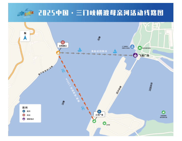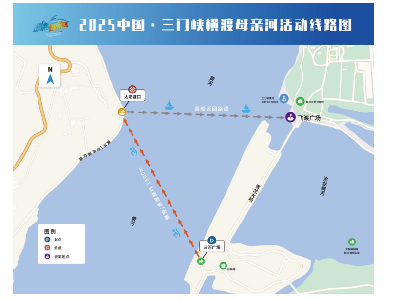 2025 China · Sanmenxia Mother River Crossing Competition InformationTo implement the spirit of the report from the 20th National Congress of the Communist Party of China—promoting widespread participation in national fitness activities, strengthening sports programs for youth, fostering the comprehensive development of mass and competitive sports, and accelerating the building of a sports powerhouse—we aim to establish the "Crossing the Mother River" event as a globally recognized flagship open-water swimming initiative and a premier platform for international exchange centered on Sanmenxia. This initiative will also help advance the widespread growth of open-water sports across China. After careful consideration, it has been decided to hold the 2025 China·Sanmenxia Crossing the Mother River event during the 30th Sanmenxia Yellow River Cultural and Tourism Festival. To ensure the event’s success, this detailed plan has been formulated.2025 China · Sanmenxia Mother River SwimLocation: Yellow River Waters at the Swan Lake National Urban Wetland Park, Sanmenxia City3. Organizational StructureGuiding Organizations: Swimming Administration Center of the General Administration of Sport of China; Chinese Swimming AssociationOrganizers: Henan Provincial Sports Bureau & Sanmenxia Municipal People's GovernmentOrganizers: Sanmenxia City Sports Bureau, Sanmenxia City Urban Management BureauCo-organizers: Sanmenxia Yellow River Swan Lake Wetland Conservation CenterOperating Unit: Henan Sailuo Sports Culture Communication Co., Ltd.4. Group Categories and ScaleGroup and Participant Setup: Crossing Group (5,000 participants), Racing Group (2,000 participants)Age groups for the racing teams:Men: Group A (18–30 years), Group B (31–40 years), Group C (41–45 years)Woman: Group A (18–30 age group), Group B (31–45 age group)V. Activity Routes and Hydrological DataStarting from the water launch point at Sanhe Plaza in Sanmenxia Swan Lake National Urban Wetland Park, swim to the Sun River Ferry Terminal in Pinglu County, Shanxi Province, on the opposite bank, then return together by boat to Feidu Plaza—covering a total distance of about 1,300 meters.The event itinerary is as follows: