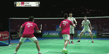 Occasionally, after running to the middle or backcourt to receive a high ball, they promptly return to their positions and get back to the net.