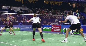 3. When you’re ready and have the ability to strike the shuttlecock effectively, facing a serve aimed deep into the backcourt, your go-to solution is usually a decisive shot—either a drop shot or a powerful smash—to instantly intimidate your opponent and force them to serve more cautiously.