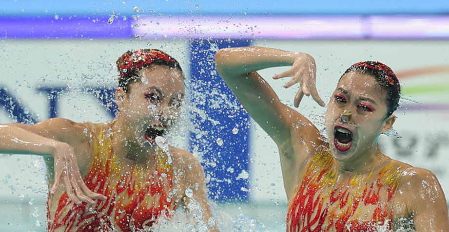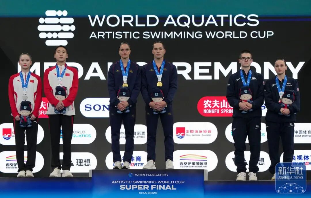 In the women's duet free routine final, China’s Lin Yanhan and Lin Yanjun sisters took home the gold medal with a stunning performance of "Moonlight Shadow," scoring 266.1442 points. Spain and Japan finished second and third, respectively. This also marked China’s second gold medal of the day.