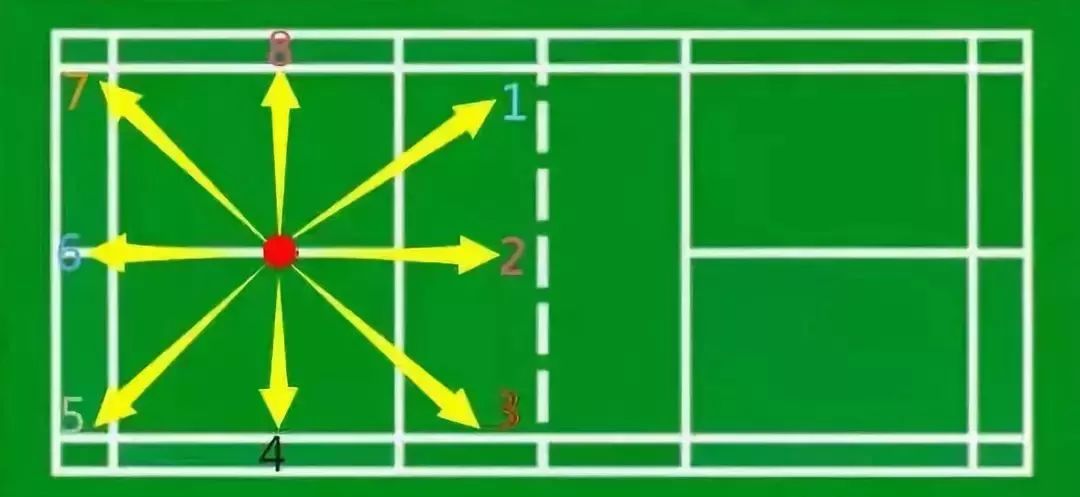 4. Across the court, no matter which spot you run to, your left foot should always face the center point at a precise 45-degree angle. Doesn’t it suddenly feel like the badminton court holds a mysterious allure—something you’ve never quite touched, let alone unveiled its true essence? After all, the journey of learning is endless, and perseverance is the key to mastering it!