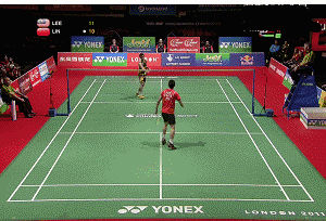 One player lifts the shuttlecock diagonally overhead, while the other smashes it straight down the line—practice this repeatedly. Remember to aim for a straight, downward smash whenever possible.(Diagonal) Topspin kill shot down the line