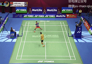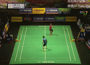 After judging the incoming ball and determining it’s relatively close to your body position, forcefully push off the ground with your left leg, then step forward sharply with your right foot—landing first on the outer side of your heel, followed by the ball of your foot, and finally transitioning into a forefoot strike. At the same time, lean your upper body slightly forward, bending your right knee joint into a lunge position.