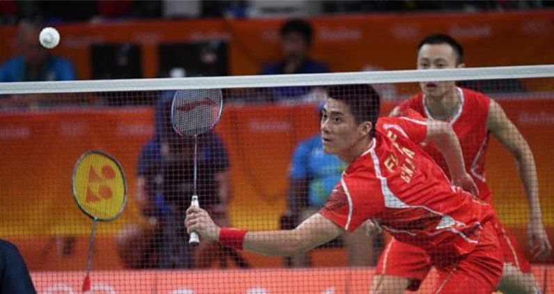 ▲Chen Long awkwardly lunged and landed right on Lee Chong Wei's racket!