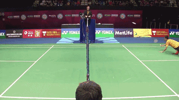 ▲ Chen Long awkwardly lunged and landed right on Lee Chong Wei's racket!