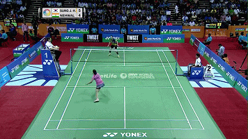 (Lee Chong Wei jumped mid-court, and the shuttlecock landed directly on the ground.)(Lin Dan executed a high-point volley, catching Lee Chong Wei off guard.)① When you anticipate the opponent hitting a drop shot, lift your racket high and position it near the net—allowing you to chip, hook, push, or even smash. In short,When you take the initiative at the net, you can play a wider variety of shots.