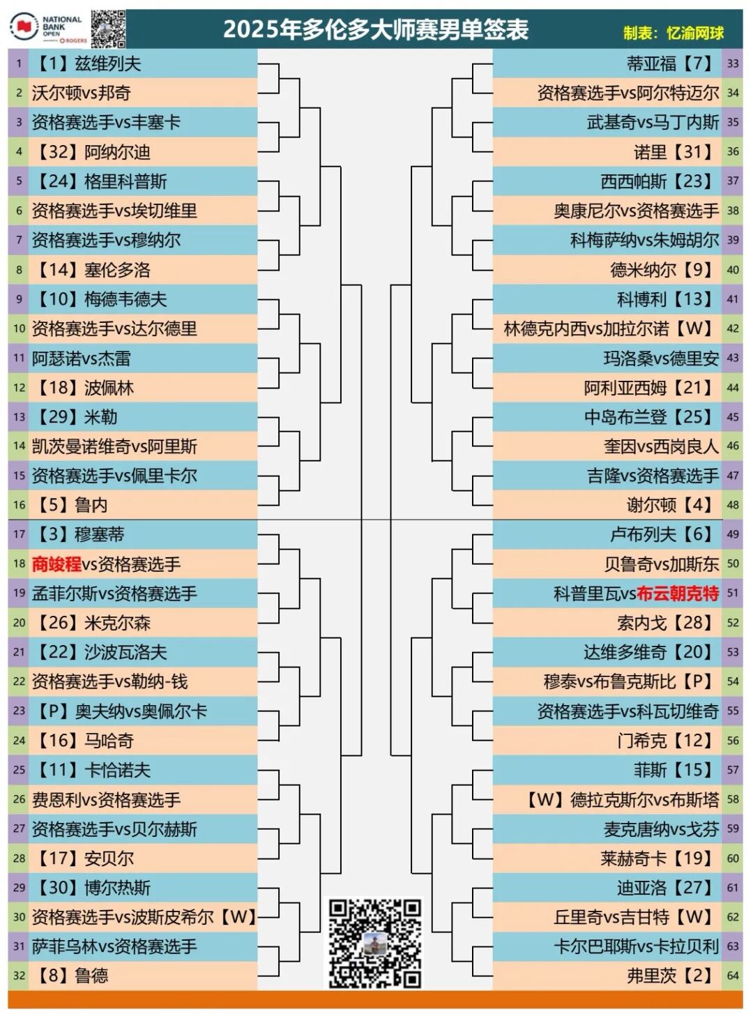 Notably, young Chinese players Shang Quncheng and Bu Yunchaokete are also in the bottom half of the draw. Shang Quncheng will face a qualifier in the first round; if he manages to advance smoothly, his subsequent matches are sure to draw significant attention. Meanwhile, Bu Yunchaokete also boasts immense potential, consistently impressing with his resilience and tenacity on the court. Though they’ll face several formidable opponents along the way, both players have the ability to deliver unexpected surprises—and could very well emerge as dark horses on the tournament stage.