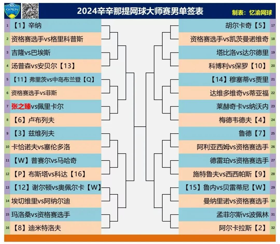 The men's and women's singles draw for the 2024 Cincinnati Open (ATP/WTA 1000) was unveiled on August 11, with the tournament taking place from August 13 to 19. As one of the key "warm-up" events ahead of the U.S. Open, this year's competition has attracted nearly all of the top-ranked players—except for Novak Djokovic, who is resting. Chinese players Zhang Zhizhen, Zheng Qinwen, Zhang Shuai, Wang Xinyu, and Yuan Yue have all received direct entry into the main draw.