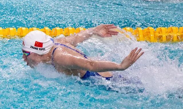 On September 25, 2024, Zhang Yufei clinched the women’s 50-meter butterfly title at the 2024 National Swimming Championships (25 meters), clocking a time of 25.16 seconds. Photo by Xinhua News Agency reporter Hu Jingwen.