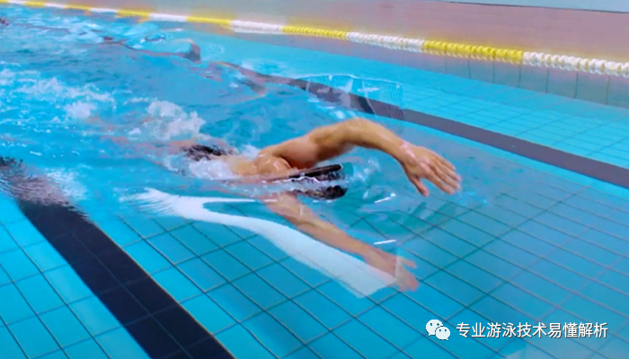 From the swimmer's perspective, dragging the elbow upon entry into the water is often caused by an eagerness to get the palm underwater quickly—especially among swimmers who prioritize a horizontal forward reach after entry. While maintaining that horizontal forward extension after entry is correct, dragging the elbow during the initial immersion can actually lead to overextending the arm forward.Some swimmers wonder: Doesn’t extending the arm forward help achieve a more streamlined body position? Yes, it does—but stretching your body too early isn’t the best approach. Instead, extend your arm forward *while* simultaneously pushing water with the other arm. Then, as your body naturally rotates, continue to deepen that forward reach. This coordinated movement maximizes the streamlined effect, significantly reducing water resistance. On the other hand, if you try to lengthen your body prematurely without generating enough propulsion, the extra reach becomes pointless and can even disrupt your overall efficiency.
