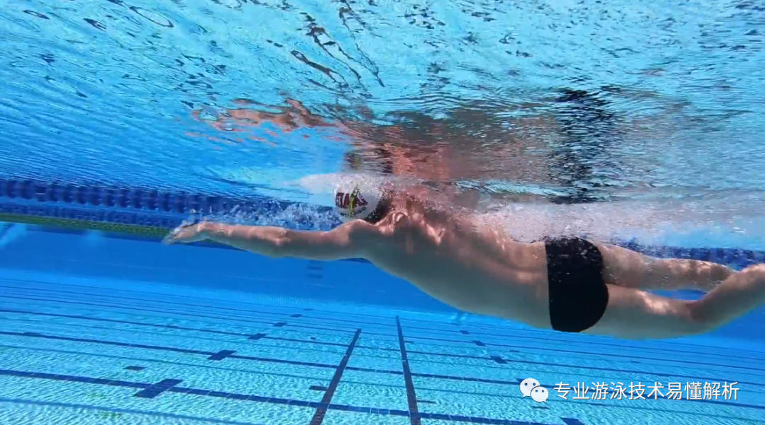 Understanding this is crucial: it means that when the body shifts into a flat, prone position, the arms should immediately enter the push phase—rather than initiating the push while the body remains in a sideways orientation. Two common mistakes deserve special attention: First, when the body is still rotated to the side, the forward-reaching arm tends to drift off course—either moving too far away from or too close to the body’s central axis. Second, holding the body in a sideways rotation for too long can lead to a collapse of the lower back, forcing the swimmer to rely more heavily on their kicks to restore the body to a flat, prone position, which ultimately makes swimming much more exhausting.