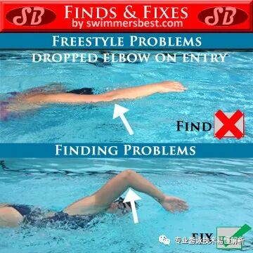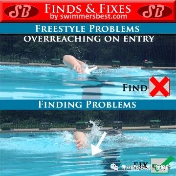 Analysis: Extending the arms excessively forward before entering the water causes the elbows to enter first, ahead of the palms.
