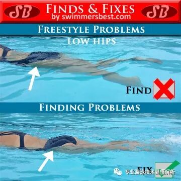 Question 11: Hip position too lowAnalysis: When swimming without consciously engaging your core muscles and neglecting proper hip movement techniques, it becomes difficult to keep your hips as close to the water’s surface as possible—or in other words, maintaining a high hip position becomes challenging.Correction: Maintaining a high hip position is a clear indicator of swimming proficiency in any stroke, serving as a key to effortless and efficient swimming. During the freestyle swim, in addition to engaging the core muscles, actively rotating the hips to activate the gluteal muscles is essential for further enhancing freestyle speed.