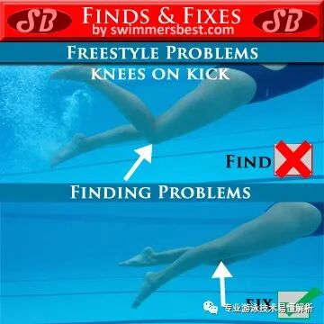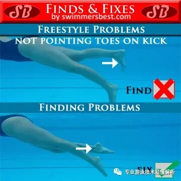 Question 7: Sculling the water with the soles of your feet during kickingAnalysis: When performing the flutter kick in freestyle, the ankle joint should remain relaxed. However, since adult ankles tend to be stiffer, it’s important to consciously straighten the foot rather than letting it naturally fall into a 90-degree angle in the water—this prevents the "sculling" issue.Correction: In freestyle swimming, the kicking motion essentially involves pushing water with the tops of your feet—or, more precisely, pressing the soles downward. Because the top of the foot forms a sloping surface, part of the downward force is redirected into a propulsive action, which is precisely how the kicking motion generates significant propulsion.