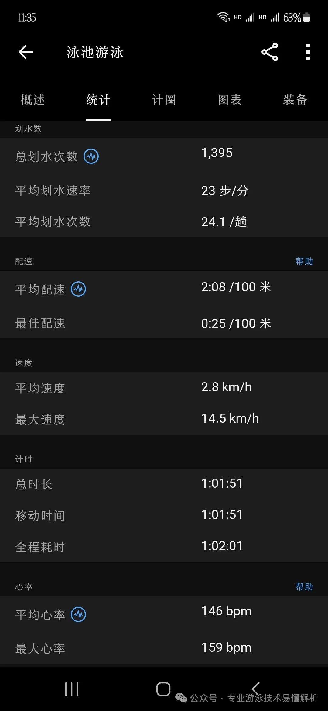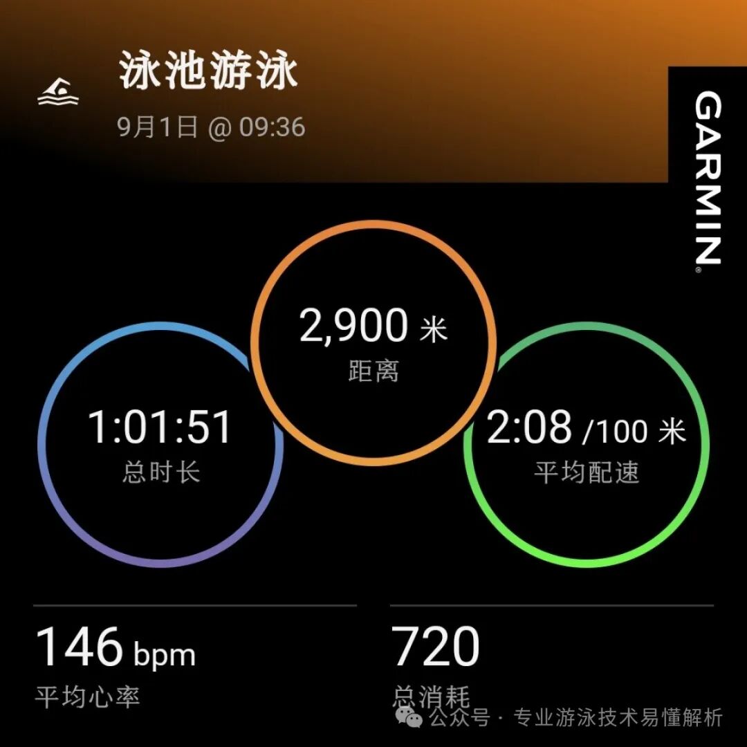 From the perspective of fitness effectiveness, you can also compare your stroke count to the corresponding energy expenditure—for instance, if you completed 1,395 strokes while burning 720 kcal. Since energy consumption is directly influenced by your heart rate, this ratio becomes a crucial reference point for swimmers aiming to enhance their sprint performance. After all, maximizing energy burn within a set time frame—and improving stroke efficiency—are essential components of training for competitive sprint swimming.