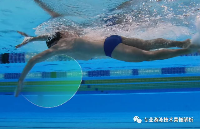 From the perspective of the upper body, the body's sideways rotation creates space for the arm to perform the stroke. Meanwhile, from the lower body standpoint, the rotation causes the legs to dive deeper into the water, enhancing both the lift and propulsion generated by the kicking motion. Overall, the body's lateral rotation effectively combines the power of the arm stroke with that of the leg kick, resulting in a significantly stronger, unified forward force.