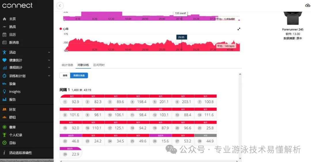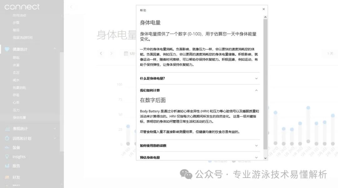 According to the data analysis, at rest, my heart rate is 59 beats per minute—significantly better than my previous resting rate of 82 bpm. During exercise, my heart rate gradually increases in sync with my activity level and then drops quickly as I finish working out. Personally, I feel energized even without taking a midday nap.A great feature of fitness watches is the "body energy" function—though it’s unclear exactly how it’s calculated or estimated, it provides valuable insights into your physical condition. When your body feels off, or when your immunity or stamina is low, your body energy level often dips as well. In such cases, it’s generally not recommended to engage in intense or prolonged, high-energy-consuming workouts.Additionally, Garmin fitness watches can accurately detect swimming strokes—based on data records, any continuous sequence of freestyle is logged as freestyle, while consistent breaststroke is recorded as breaststroke. If a swimmer alternates between the two strokes, it’s logged as individual medley.Each swimming record can be clicked to view detailed information. Once you open a medley record, you’ll see the specific stroke used in each lap—accurately reflecting the actual performance.