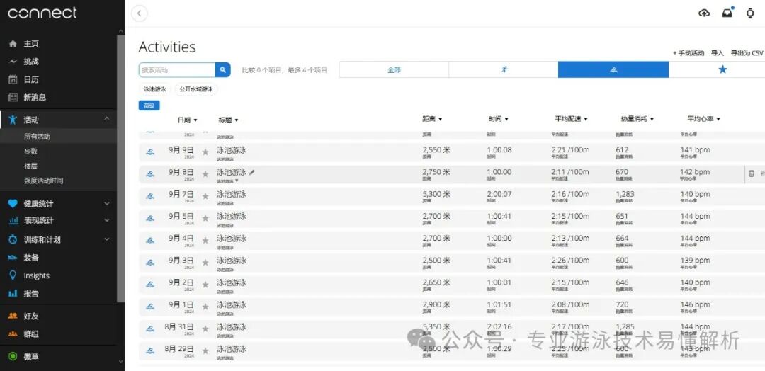I checked my swimming stats from last year—while they didn’t meet my expectations, overall, I still enjoyed swimming as a relaxing and leisurely activity.Freestyle and breaststroke each have their unique advantages, catering to different fitness needs. Freestyle is the fastest swimming stroke, characterized by its smooth, efficient movements—making it highly effective for improving cardiovascular endurance. After recovering from COVID-19 over the past six months, I’ve been experiencing a faster-than-normal heart rate, but freestyle has played a significant role in helping me regain my stamina. Once you master the breathing rhythm of freestyle—and especially perfect the technique of shifting your body’s center of gravity during the full-body immersion—you’ll find yourself swimming effortlessly for longer periods. Freestyle is ideal for building endurance, burning calories, and even strengthening your core muscles at the same time.In contrast, breaststroke is a relatively gentle stroke that particularly strengthens and enhances leg flexibility. Plus, since the head usually remains above water, it tends to feel more "secure" compared to freestyle. However, breaststroke can easily mislead swimmers—for instance, it’s often perceived as easy to pace, making it ideal for relaxation and long-distance swimming. In reality, mastering a steady rhythm in breaststroke is surprisingly tricky, and attempting to swim too relaxed can lead to improper technique. Moreover, prolonged breaststroke can put undue stress on the knees. For individuals, breaststroke is best suited for gently stretching the neck and back or when navigating open-water environments where observing the surroundings is crucial. Generally speaking, though, freestyle remains the preferred choice for most swimmers.
