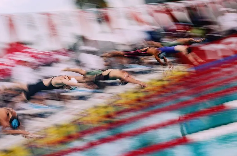 Scene of the women's 100m butterfly swimmer at the start