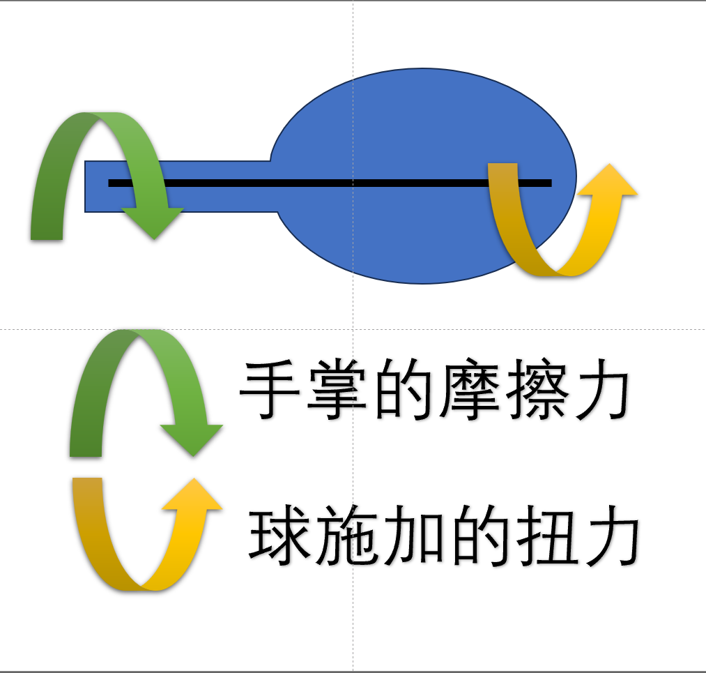To maintain racket stability, players must apply frictional forces in the opposite direction to counteract the racket’s tendency to rotate. Depending on the hitting zone, the racket may exhibit one of two rotational tendencies—but no matter which way the racket is spinning, the palm of the hand needs to generate frictional forces in the exact opposite direction to resist it.