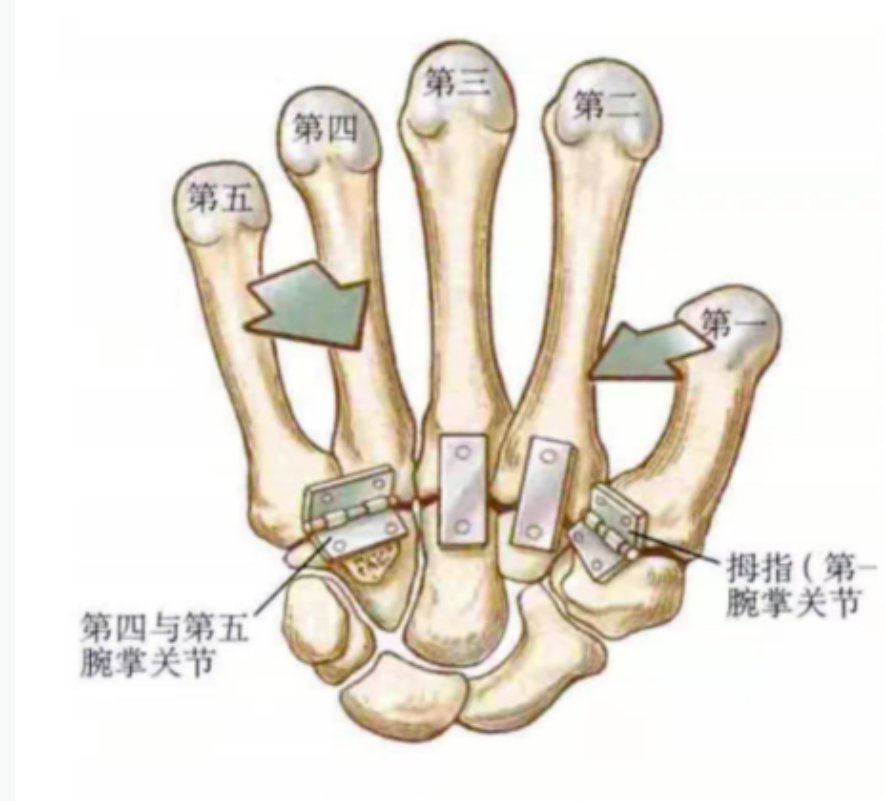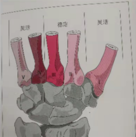 First, we will introduce the structure and characteristics of each carpometacarpal joint in sequence; the specific structures can be simply abstracted using the diagram below.