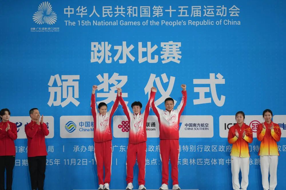 GUANGZHOU, Nov. 10 (Xinhua) — Reporters Zhou Chang, Ma Sijia, and Cheng Nan: As the diving events of the 15th National Games draw to a close, Guangdong team has delivered impressive performances: successfully defending their women’s team title, claiming the men’s team’s eighth consecutive National Games championship, clinching the women’s individual all-around gold medal, and sweeping both the men’s and women’s synchronized 3-meter springboard titles…