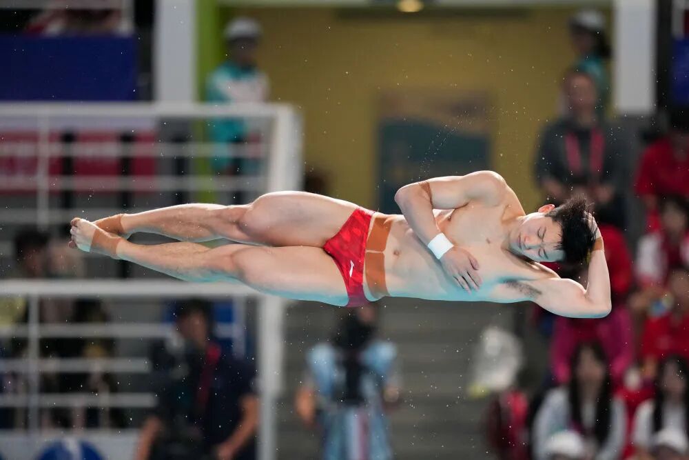 △ On November 3, Hubei team athlete Wang Zongyuan competes in the men's 3-meter springboard event. Xinhua News Agency reporter Xue Yuge photo