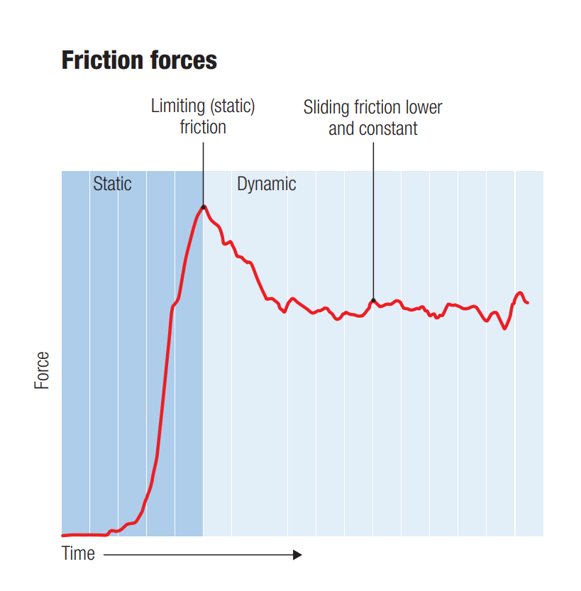 The sliding or kinetic friction is usually about 30% smaller than the static friction, which means there is less friction to change directions when sliding through a stroke on clay.