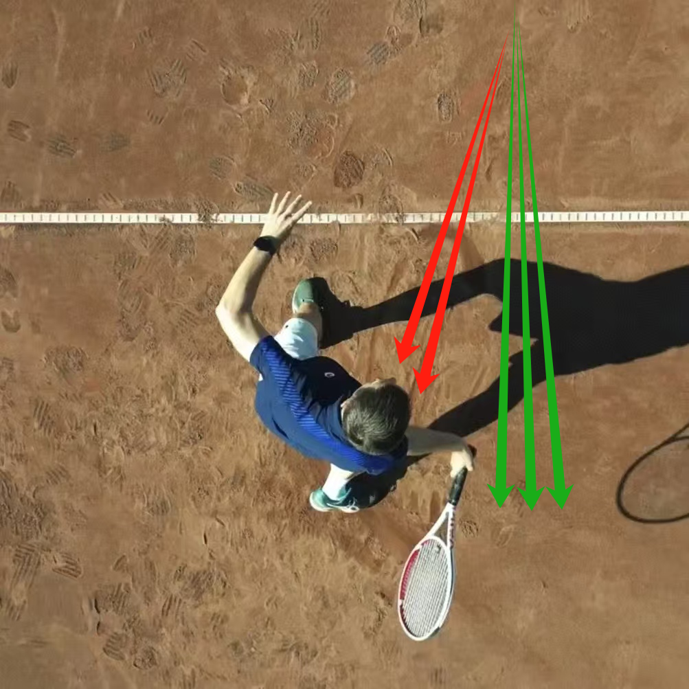 When the pelvic angle is too large relative to the front side of the tennis trajectory, it can easily lead to overextension of the body during the swing and a late impact point.
