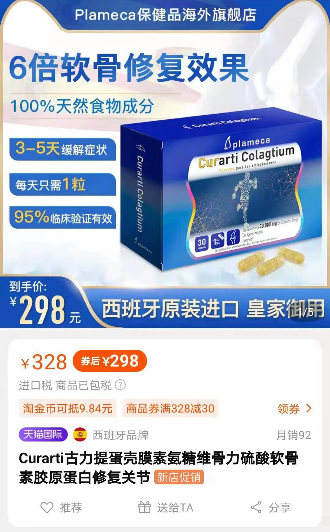 Originally priced at 328 yuan, Curarti Guli Ti Eggshell Membrane Glucosamine Vi-Goli