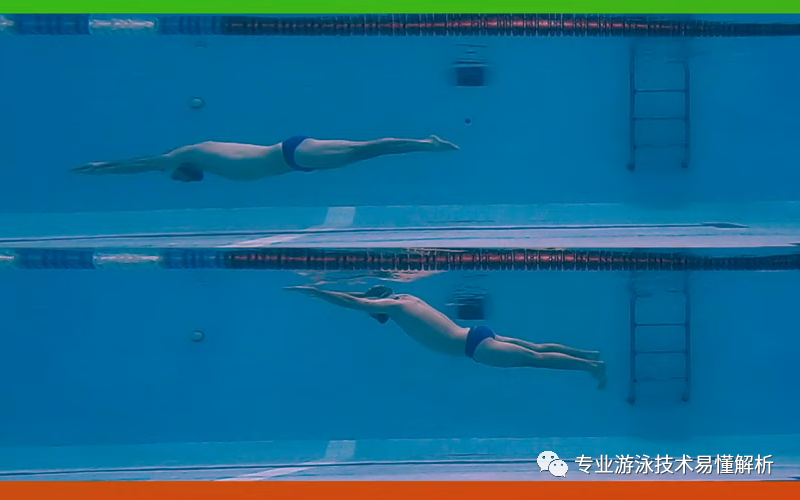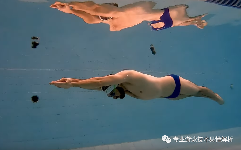 It has to be said that the body's perception while submerged in water doesn’t always match reality. For instance, when you extend your arm, you might think it’s perfectly straight, but in fact, it could be slightly angled outward or even lifted upward. Similarly, though you feel your body is aligned parallel to the water’s surface, your lower half may actually be pulled downward by your upper body, causing you to sink deeper than you realize. And when you stretch out your palm, you might believe it’s perfectly straight, yet in reality, it could be tilted upward—or even turned outward with the palm facing away from you.Therefore, having a swimming partner help you capture your body posture underwater is both essential and highly practical—it helps improve your body awareness and allows you to better control your position in the water.Dive with the same force, and once in the water, maintain the same streamlined body position—but still, the speed and distance you cover underwater can vary dramatically. This could happen for many reasons: perhaps you glanced up unintentionally, lifted your palms slightly, arched your back, hooked your feet into the water, relaxed your core too soon, or even exhaled too early.Of course, the angle of entry into the water and excessive muscle tension during takeoff could be the key reasons for the rapid decrease in speed after entering the water.In short, always remain acutely aware of your body’s connection with the water and maintain a slender, streamlined posture—this is a swimmer’s ultimate tribute to the water, allowing effortless, graceful movement through the pool.