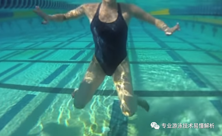 By the way, here’s a freestyle kick drill: Use your freestyle legs to perform sculling movements in deep water, stabilizing your body position underwater while minimizing vertical bobbing. Aim to hold this position for about 1 to 2 minutes—consistent practice like this will quickly improve your freestyle kicking technique, far more effectively than simply lying face-down on a kickboard!