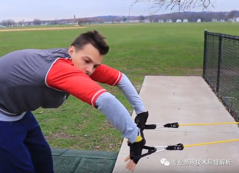 It's important to note that the resistance rope should be specifically designed for swimming exercises—do not substitute it with regular rubber bands. When performing resistance rope drills, maintain a high-elbow, water-engaging arm position; avoid letting your elbow drop, as this could lead to an improper "dragging-elbow" technique while pulling the rope.