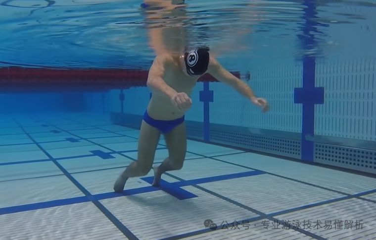 From a physical posture perspective, balance has two key dimensions: first, the equilibrium between the upper and lower body—keeping the lower and upper halves aligned at the same horizontal plane—and second, the balance between the left and right sides of the body. In either case, maintaining stability hinges on activating your core strength: gently engage your abdominal muscles to create a solid pivot point. Think of your upper and lower body as the two ends of a seesaw. If the lower half starts to sink, the upper-body arms can lightly lift out of the water—crucially, without applying any additional force or tension. By keeping your arms relaxed yet poised, you allow their own weight to work effectively. Meanwhile, as the arms break the surface, the reduced buoyancy of the upper body causes the lower half to rise slightly. This is precisely how the "seesaw" exercise functions!