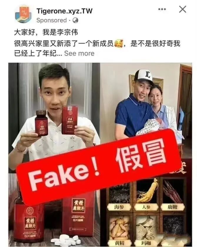 It is reported that the image of Malaysian badminton legend Lee Chong Wei has been exploited and used for promotional purposes by an unscrupulous merchant through a deceptive "plant-and-replace" tactic. The product launched by this merchant is called "Huangjing Deer Antler Tablets." Deeply angered by this, Lee Chong Wei emphasized that he has never endorsed such advertisements and urged the company involved to promptly remove all related promotional materials.
