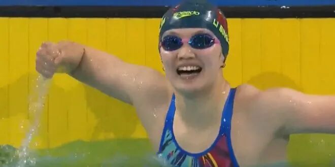 In the women's 400m freestyle final, Li Bingjie broke the 4-minute barrier, clocking a stunning time of 3:59.99 to claim the gold medal and set a new Asian record. Her previous Asian record, which she herself had set at the 2023 National Spring Championships, stood at 4:01.08. With this remarkable achievement, Li Bingjie became just the sixth woman in history to swim the 400m freestyle under 4 minutes, joining an exclusive club that now includes Titmus (Australia), McIntosh (Canada), Ledecky (USA), Ferry-Whitaker (New Zealand), and Pellegrini (Italy).