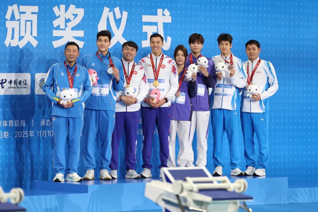 Chen Hao from the Liaoning team won the silver medal with a time of 22.17 seconds, while Pan Zhanle from the Zhejiang team and Liu Wudi from the Fujian team tied for the bronze medal, both clocking in at 22.21 seconds. Notably, Pan Zhanle, a “Grand Slam” winner in the 100-meter freestyle, narrowly advanced to the final from the semifinals by just 0.01 second—a thrilling comeback that showcased his all-around excellence! This competition not only marked the rise of the Hong Kong team but also highlighted the vibrant landscape of Chinese short-distance freestyle swimming: "veterans holding firm, rising stars breaking through!"
