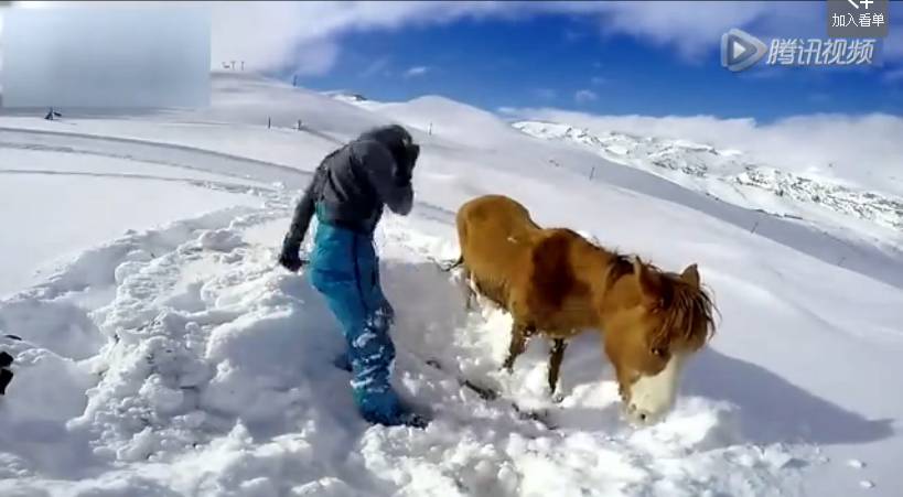 A loving guy rescues a trapped wild horse during a skiing trip...