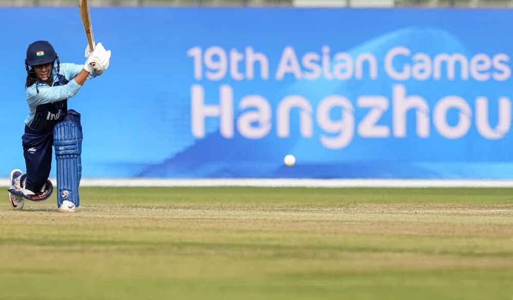 On September 25, 2023, Indian team players during the women's final of the cricket event at the Hangzhou Asian Games.