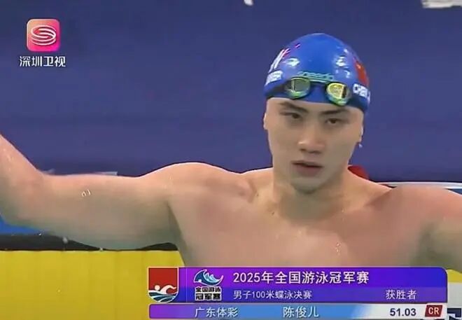 In the men's 100m butterfly final, Chen Jun'er swam a time of 51.03 seconds, breaking the meet record to claim the gold medal—also marking the second-fastest national performance ever in the men's 100m butterfly. Xu Fang also improved his personal best, finishing second with a time of 51.51 seconds. Both swimmers have now met the World Championships A standard (51.77). Meanwhile, Wang Xizhe secured third place with a time of 51.86 seconds.