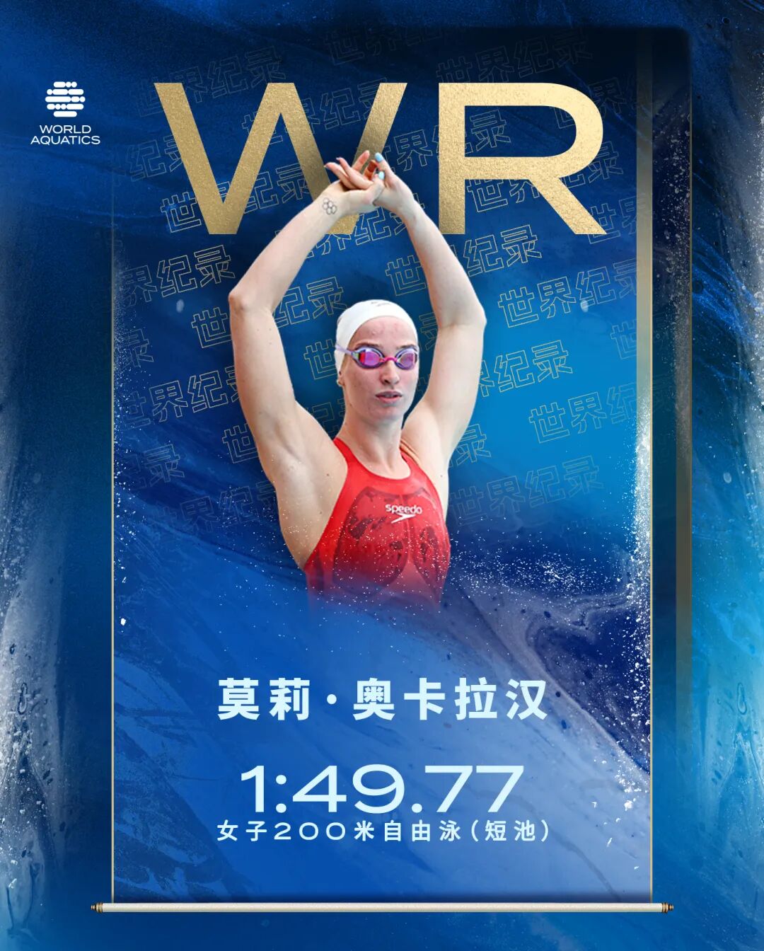 On October 19, Beijing time,In the women's 200m freestyle event, Australian swimmer Mollie O'Callaghan shattered the world record with a time of 1:49.77 to claim victory!