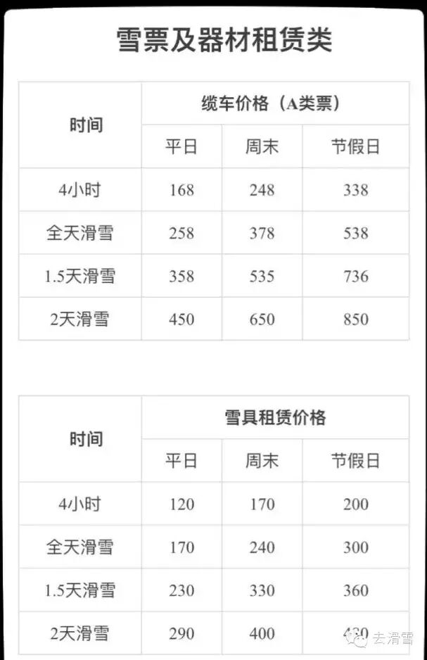 ➤Book one day in advance to enjoy discounted ski rates: 4 hours for 165 yuan on weekdays, or 185 yuan for the full day; and 255 yuan for 4 hours or 295 yuan for the entire day on weekends. Prices include admission tickets, insurance, a full set of ski equipment, and lift/tow rope usage fees.