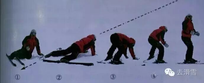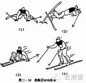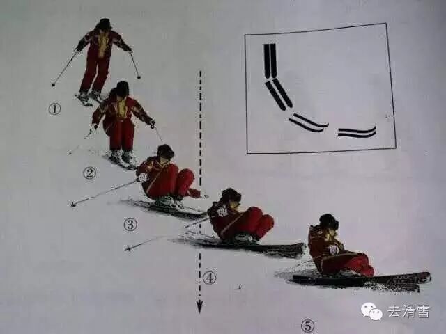 The correct falling posture: When you lose your balance, avoid struggling—instead, quickly bend your knees to lower your center of gravity. Extend your arms naturally, and gently shift your hips sideways as you sit down on the mountain side. Keep both skis slightly lifted off the ground to prevent them from rolling. Before coming to a complete stop, avoid extending your legs or letting any part of your skis touch the snow; instead, maintain a slightly crouched position.