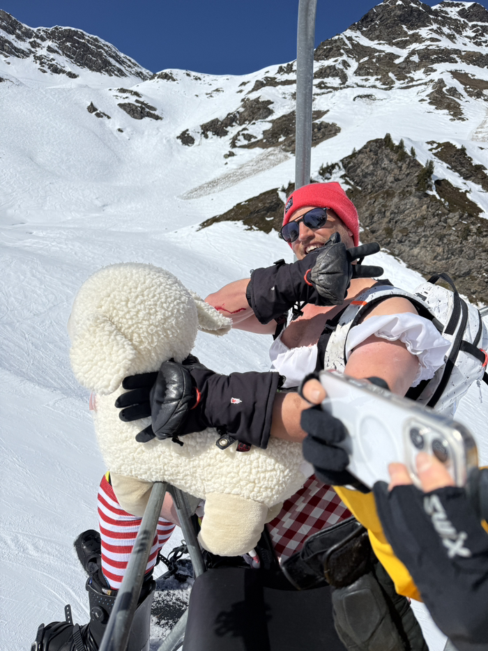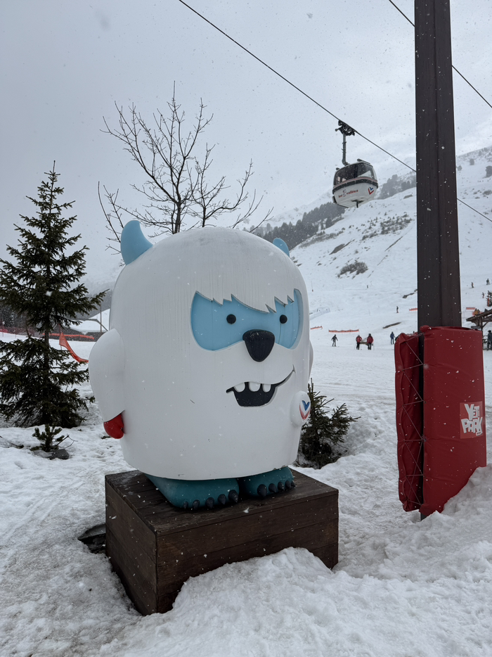 By afternoon, we weren’t planning to ski—instead, we exchanged my Ep Pass for a 7-day ski ticket and even snapped a photo with the resort’s mascot right at the entrance.